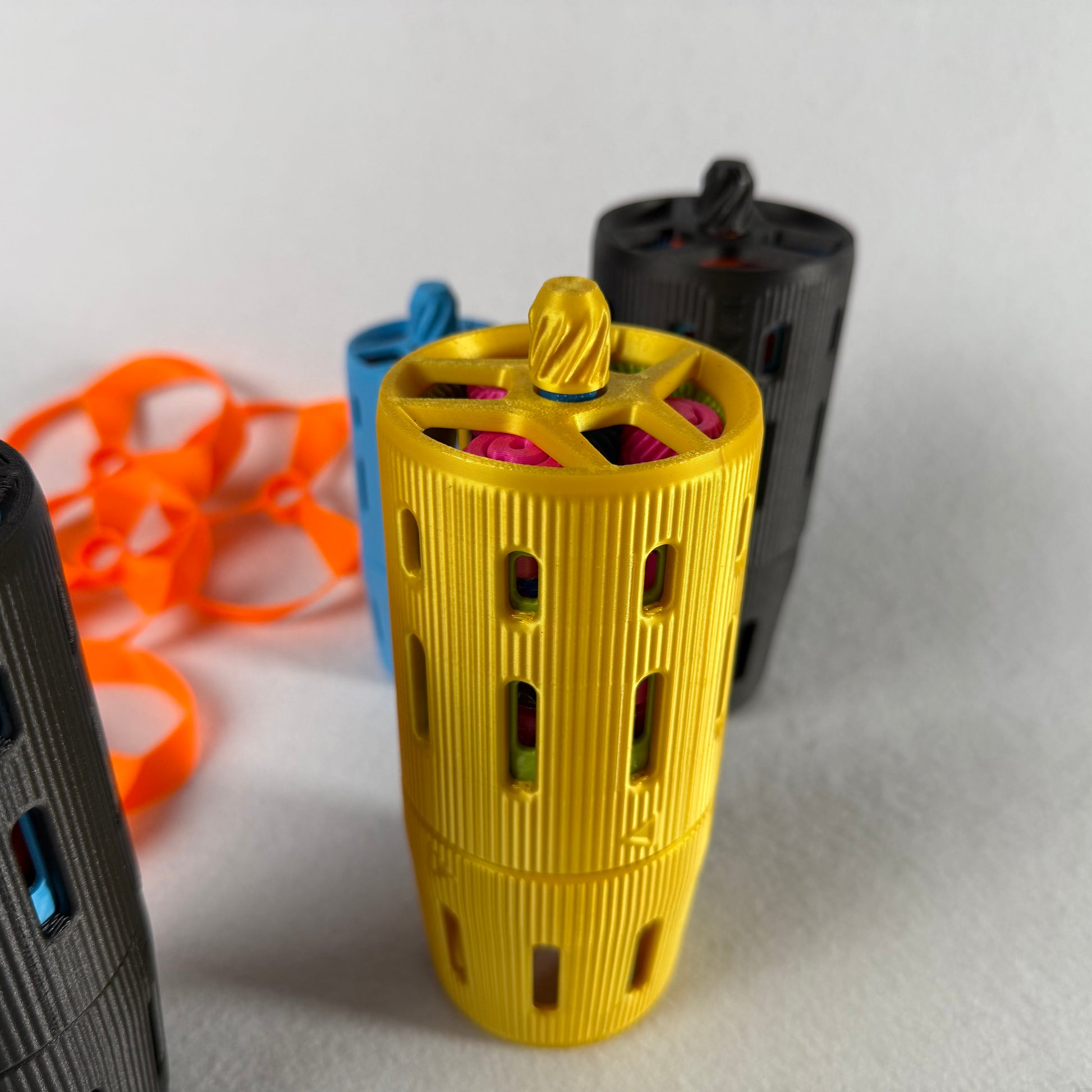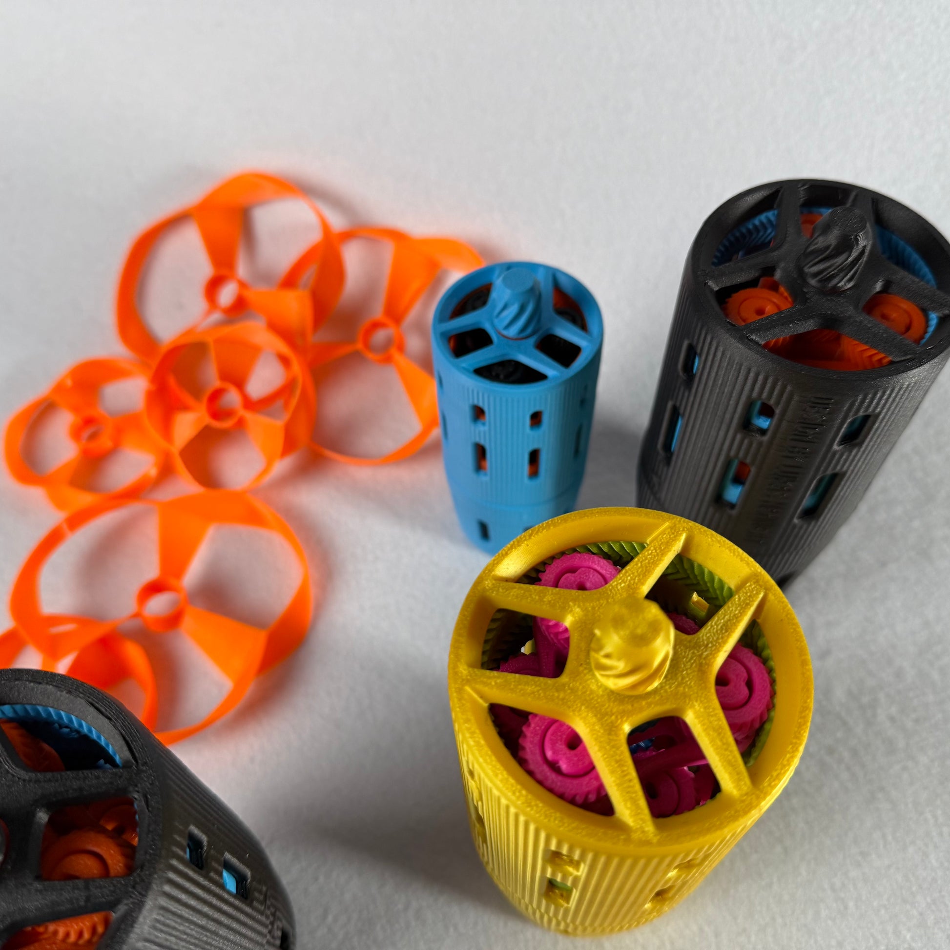 Gehäuse Schwarz, Innenring Hellblau, Getriebe Orange, Propeller Orange